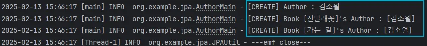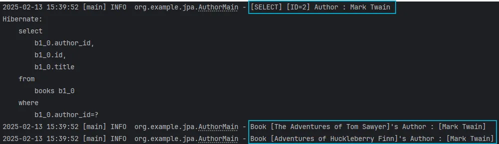 log.info("[SELECT] [ID=2] Author : {}", findAuthor);