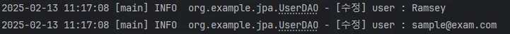 - log.info() 사용으로 DB에 저장, 수정, 삭제되는 과정 확인 가능