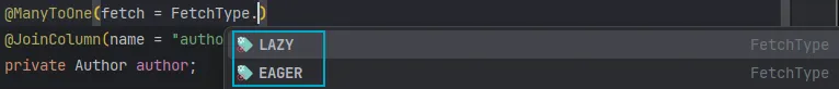 @ManyToOne(fetch = FetchType.LAZY)