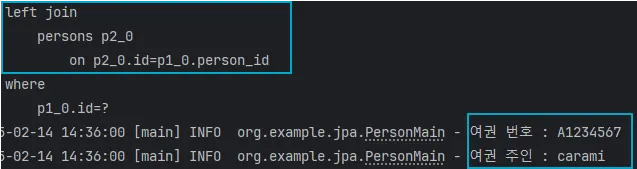 - 여권 데이터 조회와 여권 주인 데이터조회를 함께 출력한 예시