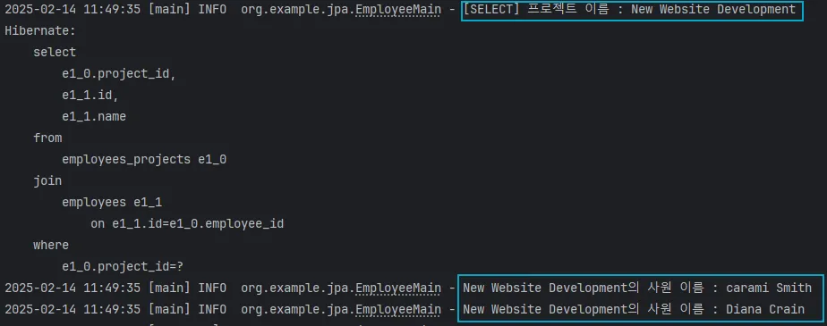 log.info("{}의 프로젝트명 : {}", employee.getName(), project2.getTitle());
