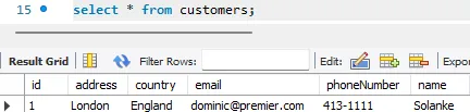 address, country, email, phoneNumber 등도 컬럼에 포함되어있는 것을 확인할 수 있음