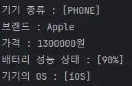 - Devices (부모 클래스)와 Phone, Laptop (자식 클래스들)간 상속관계