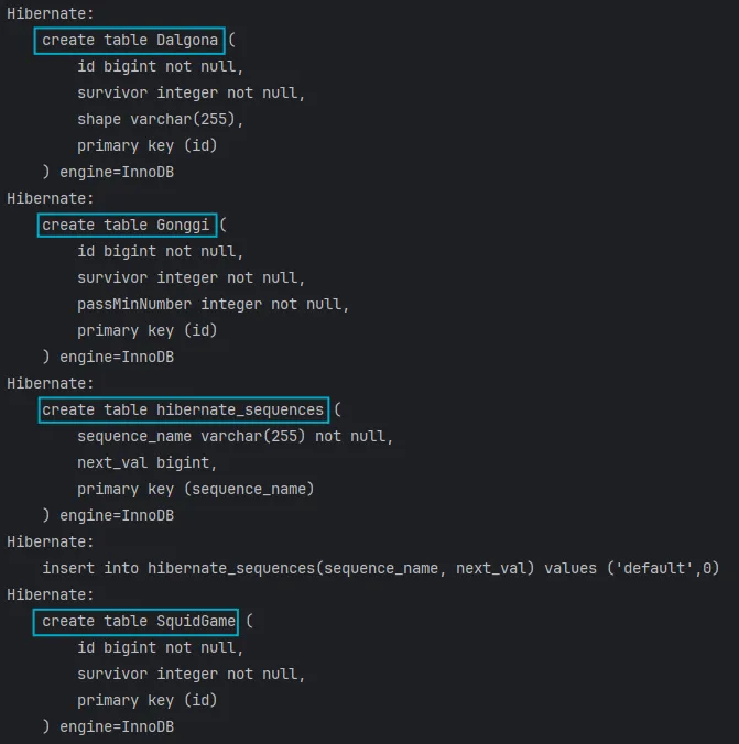 - 각각의 테이블이 만들어지며 id라는 공통적인 컬럼으로써 조인을 할 수 있는 형태로 구성되어있다.