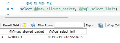- MySQL 데이터 출력 제한 늘리기 (limit 사용)