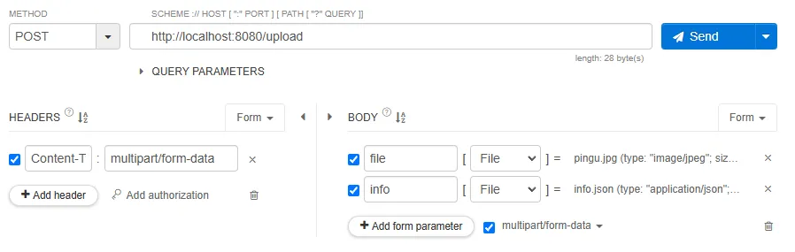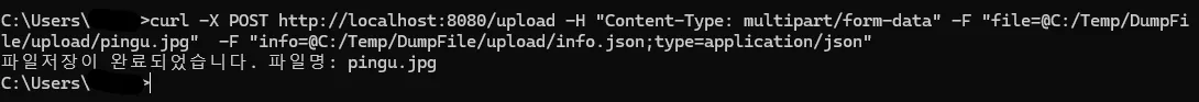 - curl -X POST http://localhost:8080/upload -H "Content-Type: multipart/form-data" -F "file=@C:/Temp/DumpFile/upload/pingu.jpg" -F "info=@C:/Temp/DumpFile/upload/info.json;type=application/json"