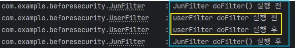 log.info("userFilter doFilter 실행 전");