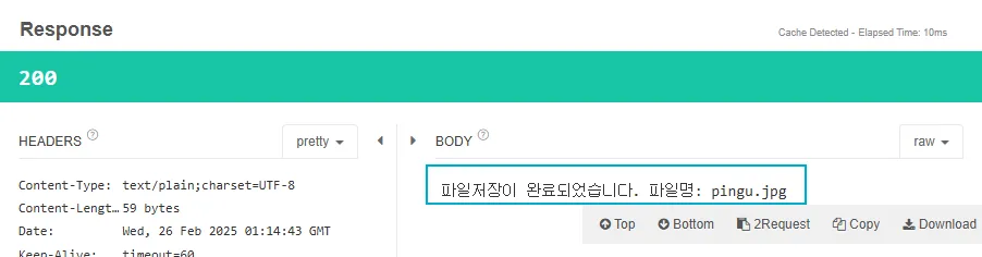 - POST 결과 지정된 경로에 랜덤한 이름 값으로 잘 저장되어있고 이미지도 제대로 출력되는 것을 확인