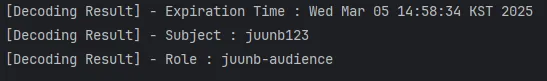 โก๏ธ์ถ๋ ฅ : [ACCESS TOKEN] : eyJhbGciOiJIUzI1NiJ9.eyJzdWIiOiJ0ZXN0Q……