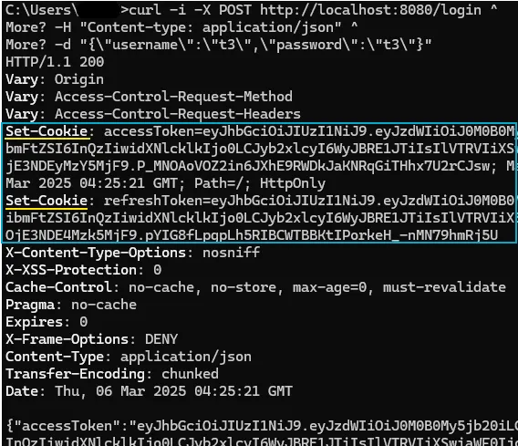 - 결과값으로 Set-Cookie 도 가져와지는 것을 확인 가능