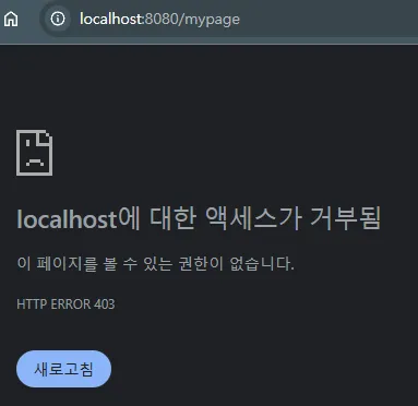 ➡️localhost:8080/mypage로 하면 403 error가 발생했지만