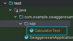 - 테스트할 클래스파일과 동일한 이름으로 test패키지 안에 만들어진다.