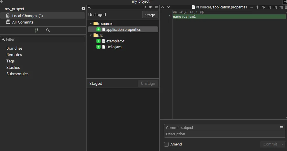 - Staged 하고싶지 않은 파일들을 넣어놓을 수 있는 파일