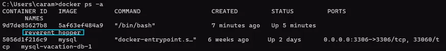 - --name을 지정하지 않으면 이처럼(reverent_hopper) 임의로 이름을 만들어냄