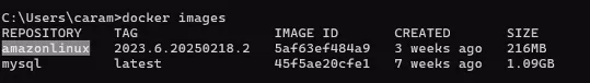- docker pull amazonlinux:2023.6.20250218.2 ➡️도커 이미지 설치