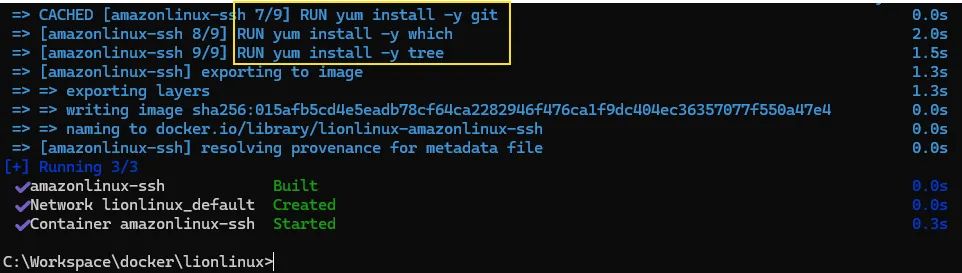 - RUN yum install -y [필요패키지] 를 넣어주면된다.
