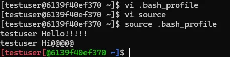 - source로 .bash_profile을 실행했을때 echo로 설정했던 테스트할 코드가 출력되고