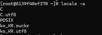 - locale -a로 확인했을때 ko 로 시작하는 것이 없다는 것은 한글팩이 없다는 것
