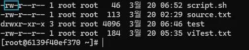 - 권한이 없어도 가능 = bash를 script안에 써놨기때문에 bash로 실행하는 것은 수행하는 것