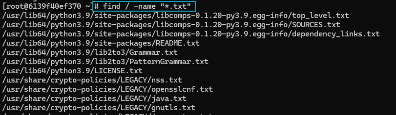 ex. find / -name “myconfig.conf”