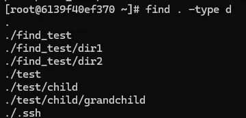 - 타입이 (d) 디렉토리인 모든 것( . ) 을 찾아달라는 의미