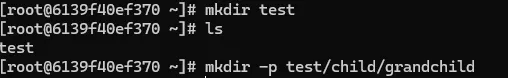 test 디렉토리가 존재할 경우에는 그 하위디렉토리로 child, grandchild를 만들고