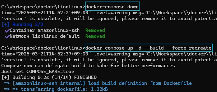 - docker-compose down 을 먼저 해준 후