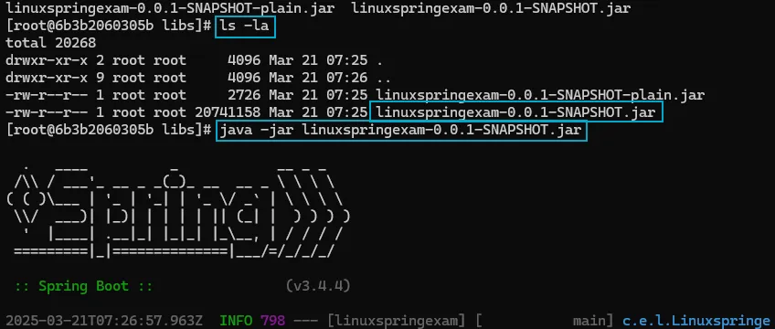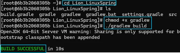 - .jar파일을 확인하고 java -jar 명령어로 실행해주면 리눅스에서 spring서버를 실행 가능