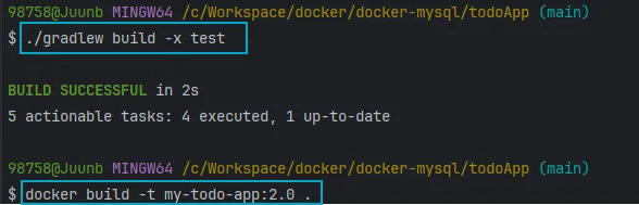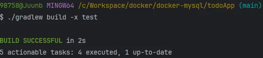 - ./gradlew build -x test ➡️test를 제외하고 빌드하겠다는 것
