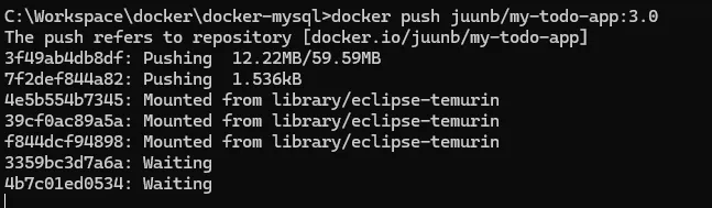 - docker tag my-todo-app:3.0 juunb/my-todo-app:3.0