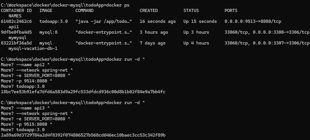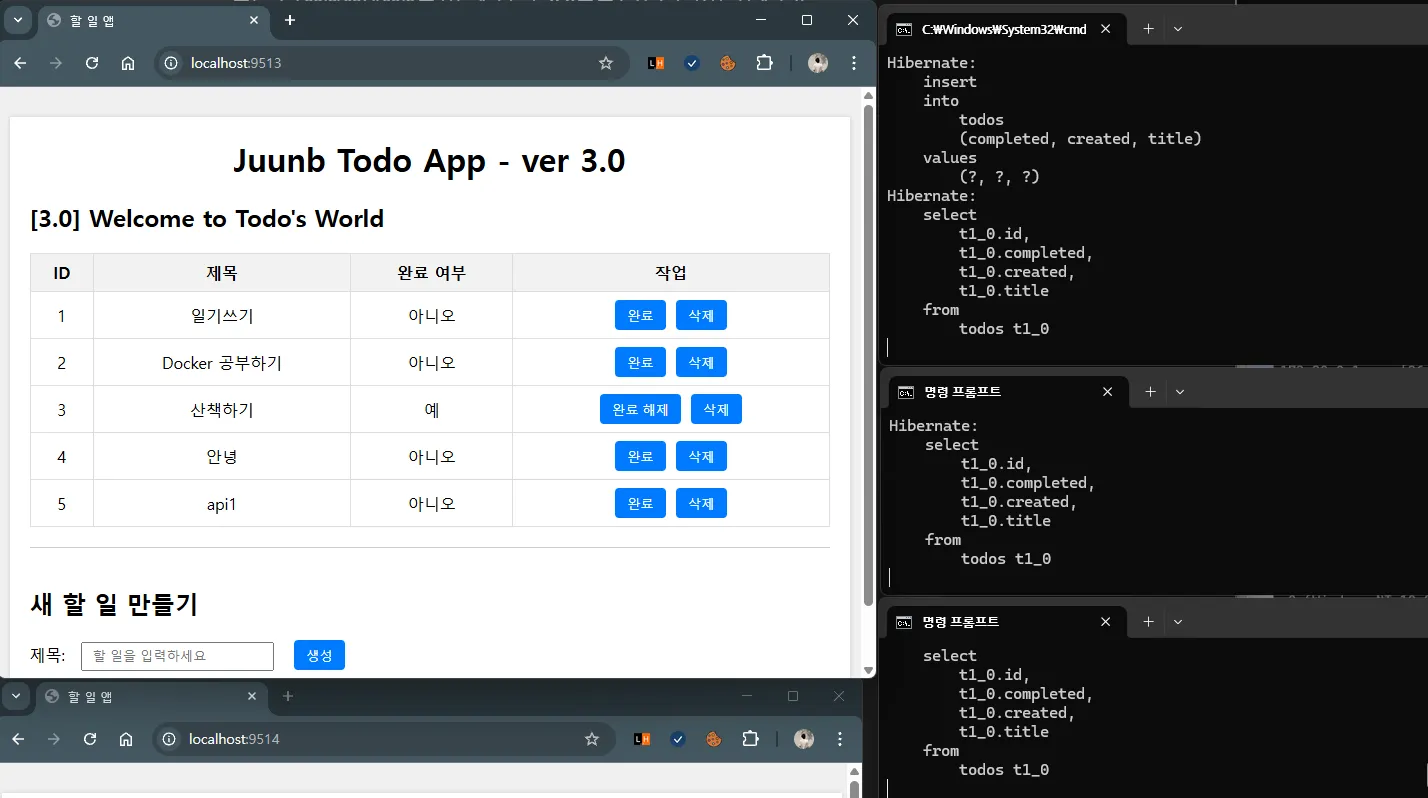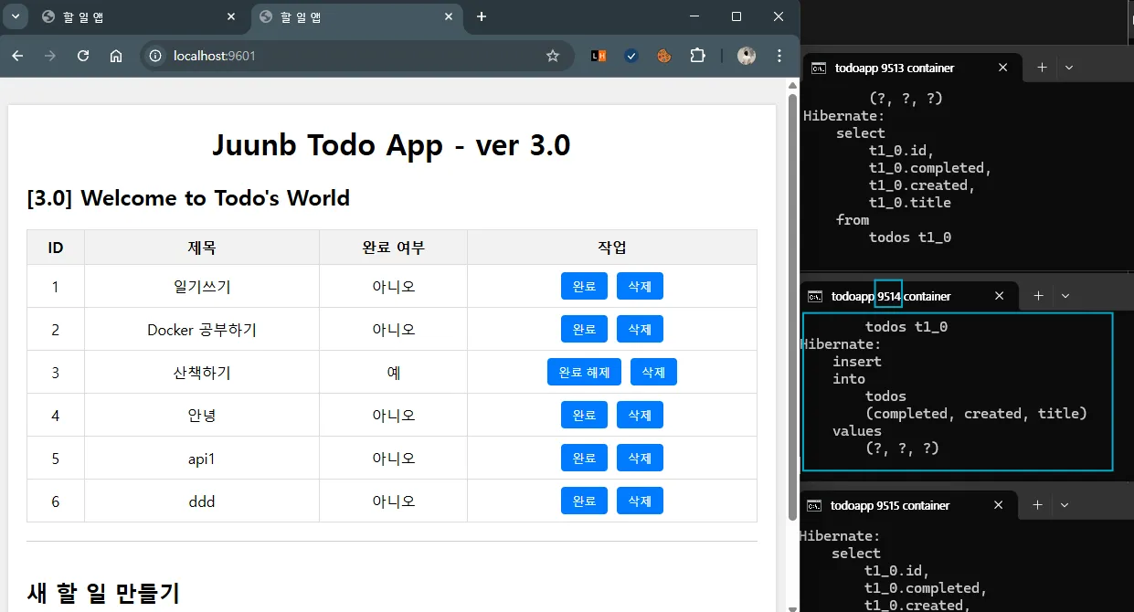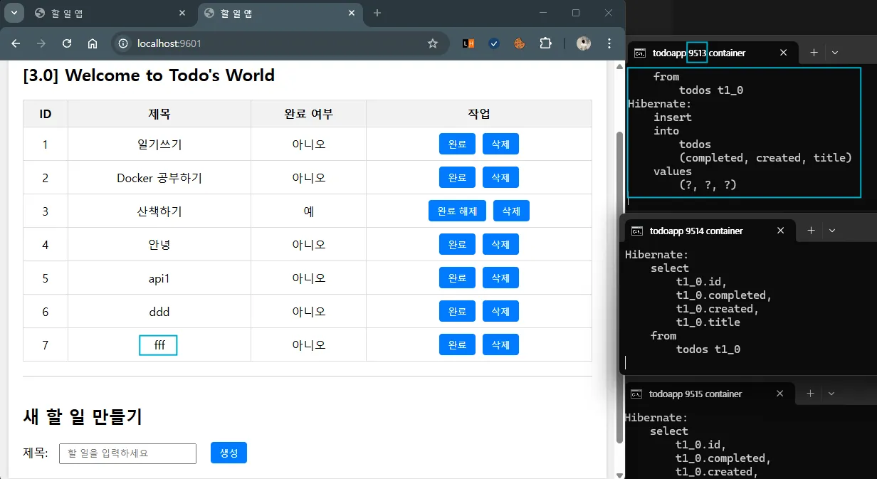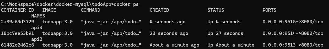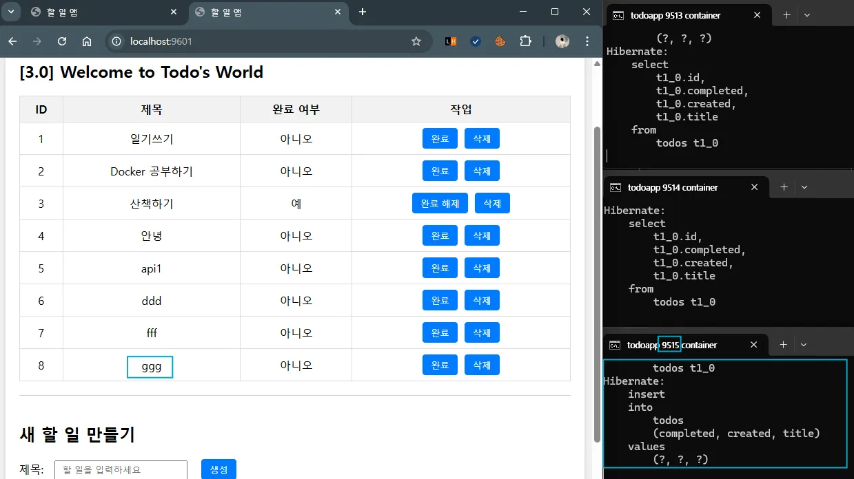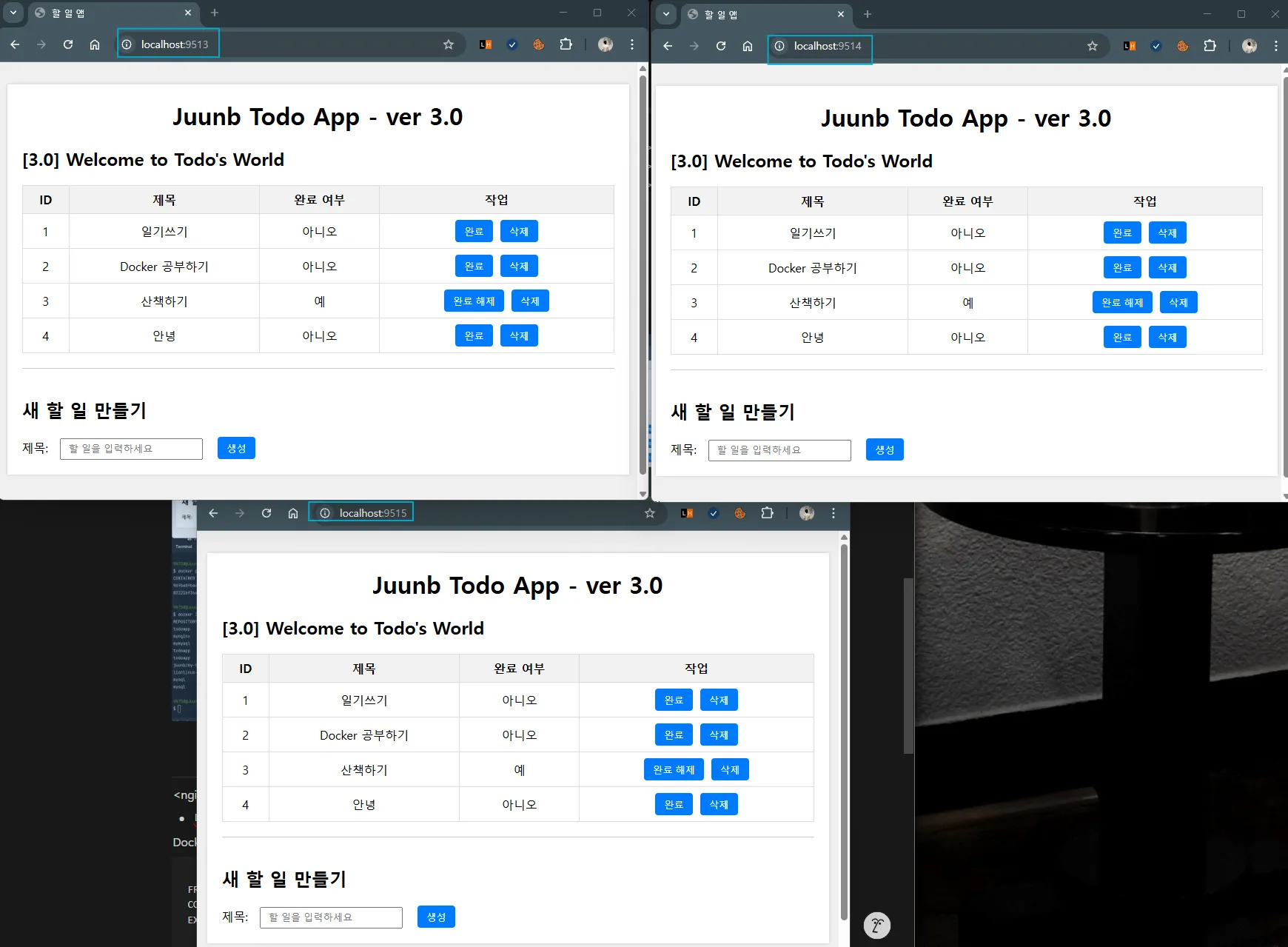 - todoapp 3개가 잘 돌아가고 있는지 확인 ➡️9513, 9514, 9515 열려있는 중