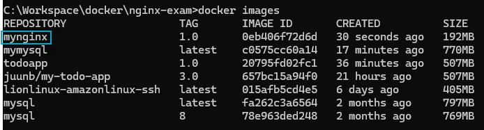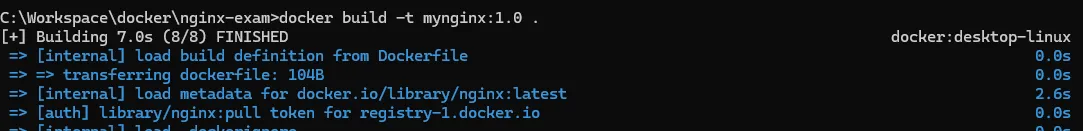 - docker build -t mynginx:1.0 . : 이미지 만들기