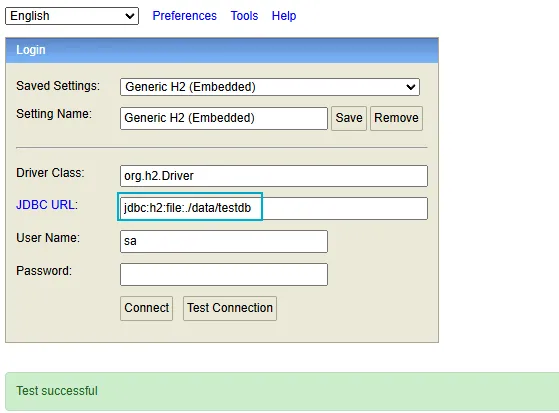 url: jdbc:h2:file:./data/testdb;DB_CLOSE_ON_EXIT=FALSE;AUTO_RECONNECT=TRUE