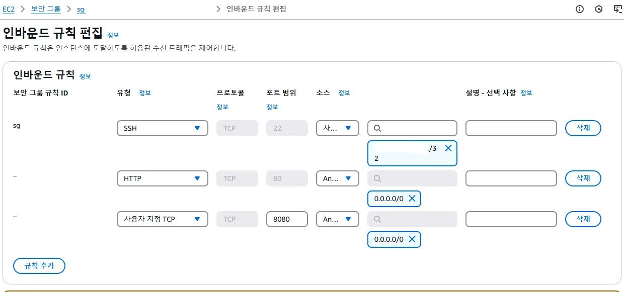 인바운드 규칙 추가