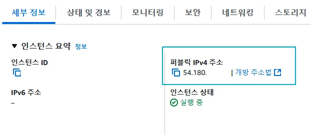 - 인스턴스의 세부정보를봤을때 퍼블릭 IPv4주소를 확인해보면 이 주소를 통해서 내 애플리케이션에는