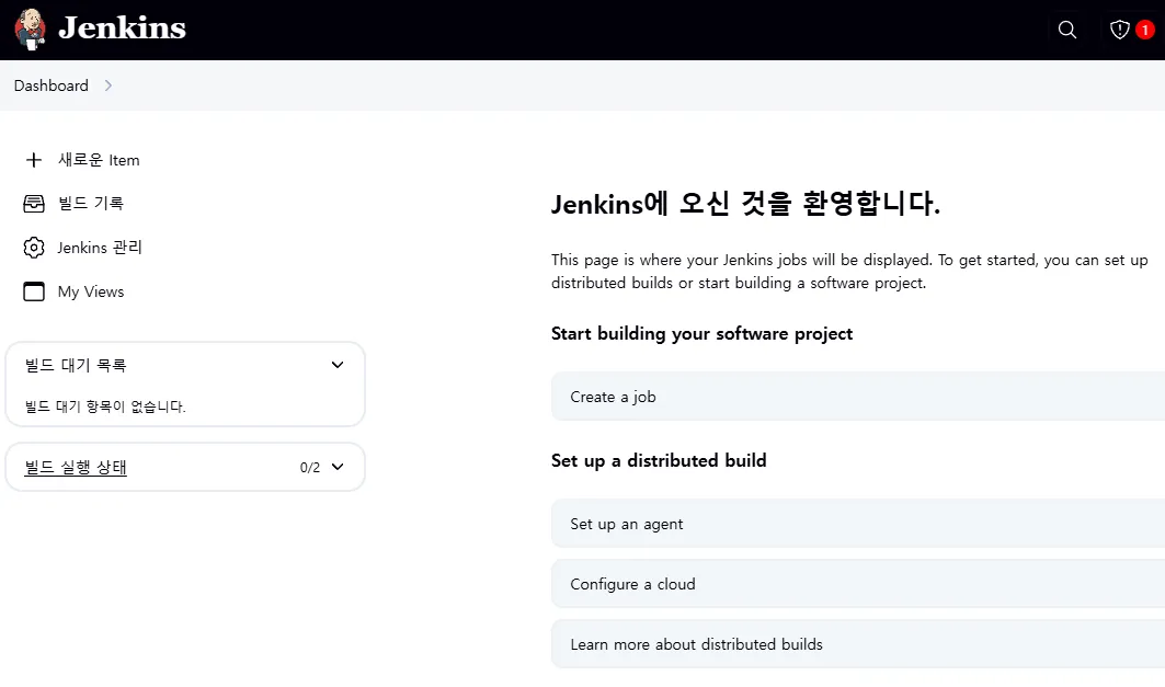 아까 넣어놨던 “jenkins를 이용하여 CI/CD 배우기” 를 확인 가능