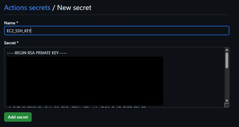 ex. ${{secrets.EC2_SSH_KEY}}