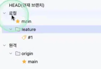 - feature/#1 처럼 브랜치를 만들면 이처럼 디렉토리 안에 #1이 들어가는 구조를 확인 가능