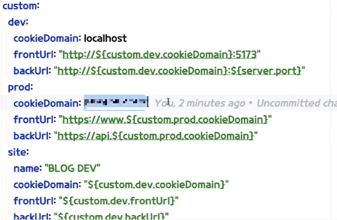 http://${custom.dev.cookieDomain}:5173 처럼 지정해놓으면