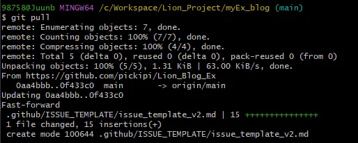 - github에서 직접 이슈를 만들어주었을때는 git pull로 로컬에 변경사항을 업데이트해주어야한다.
