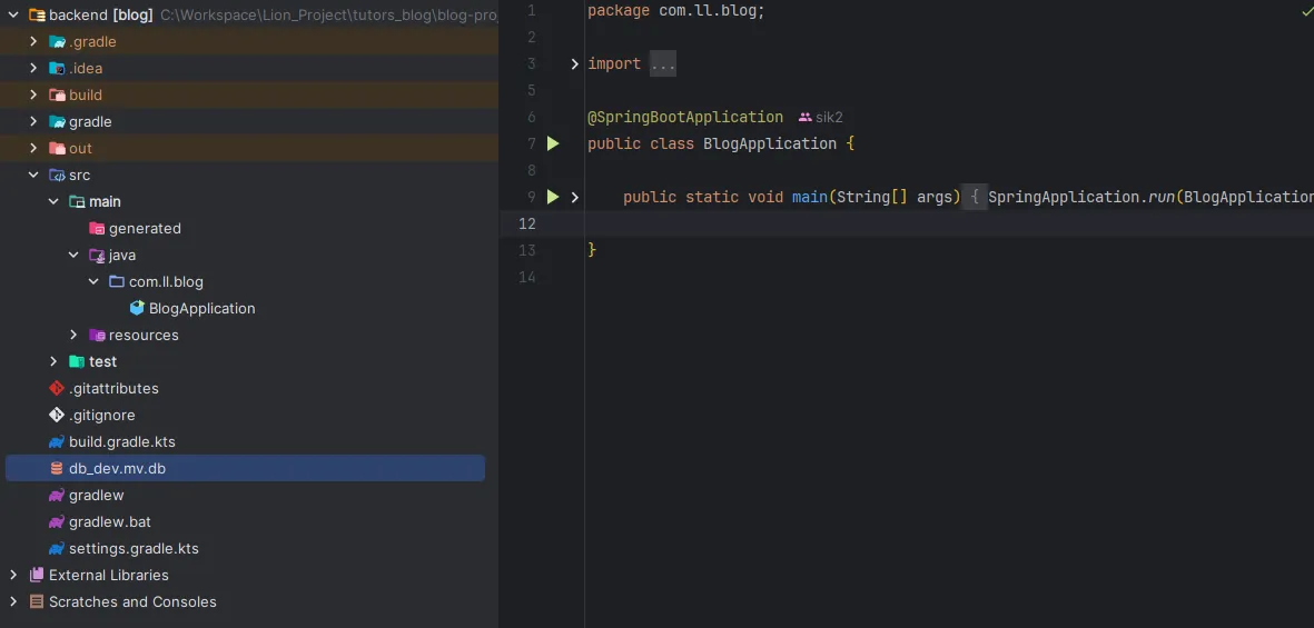 - 테스트 실행 시 이처럼 db_dev.mv.db가 생겨나야함 ➡️ 정상적으로 실행된 것