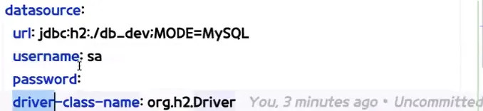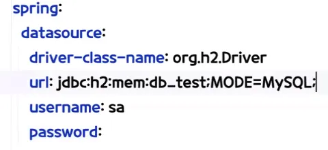 - db_dev DB명으로 h2데이터베이스를 설정하는데 MySQL문법을 따르도록 MODE를 설정