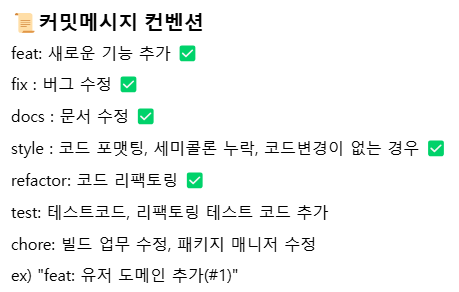 - ex. “feat: 공지사항 상세페이지 API 작업”