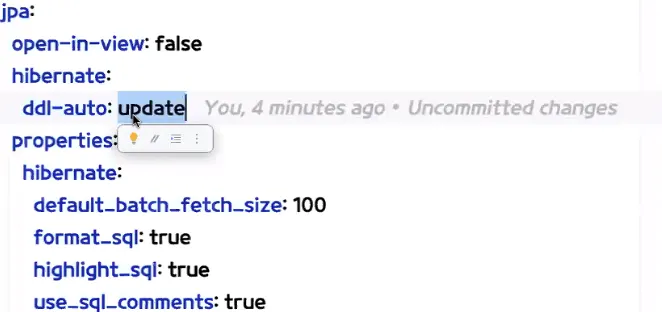 - ddl-auto: update ➡️수정내역이 있을때만 업데이트