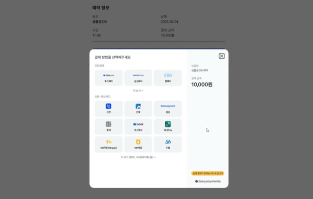 - 그 결과 토스페이먼츠를 통해 다양한 은행을 통해 결제할 수 있도록 구현