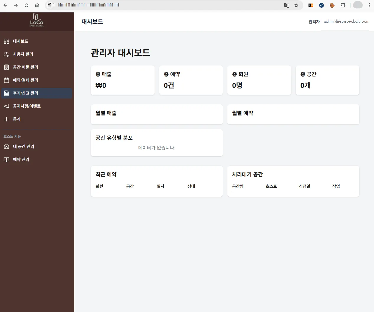 - 호스트페이지에서는 공간 등록/관리, 예약 및 정산 관리를 할 수 있는 페이지로 구성하였음