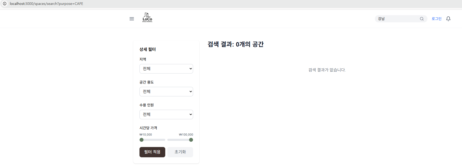 검색기능에서 필터 및 검색어를 통해 원하는 공간을 상세하게 찾을 수도 있음