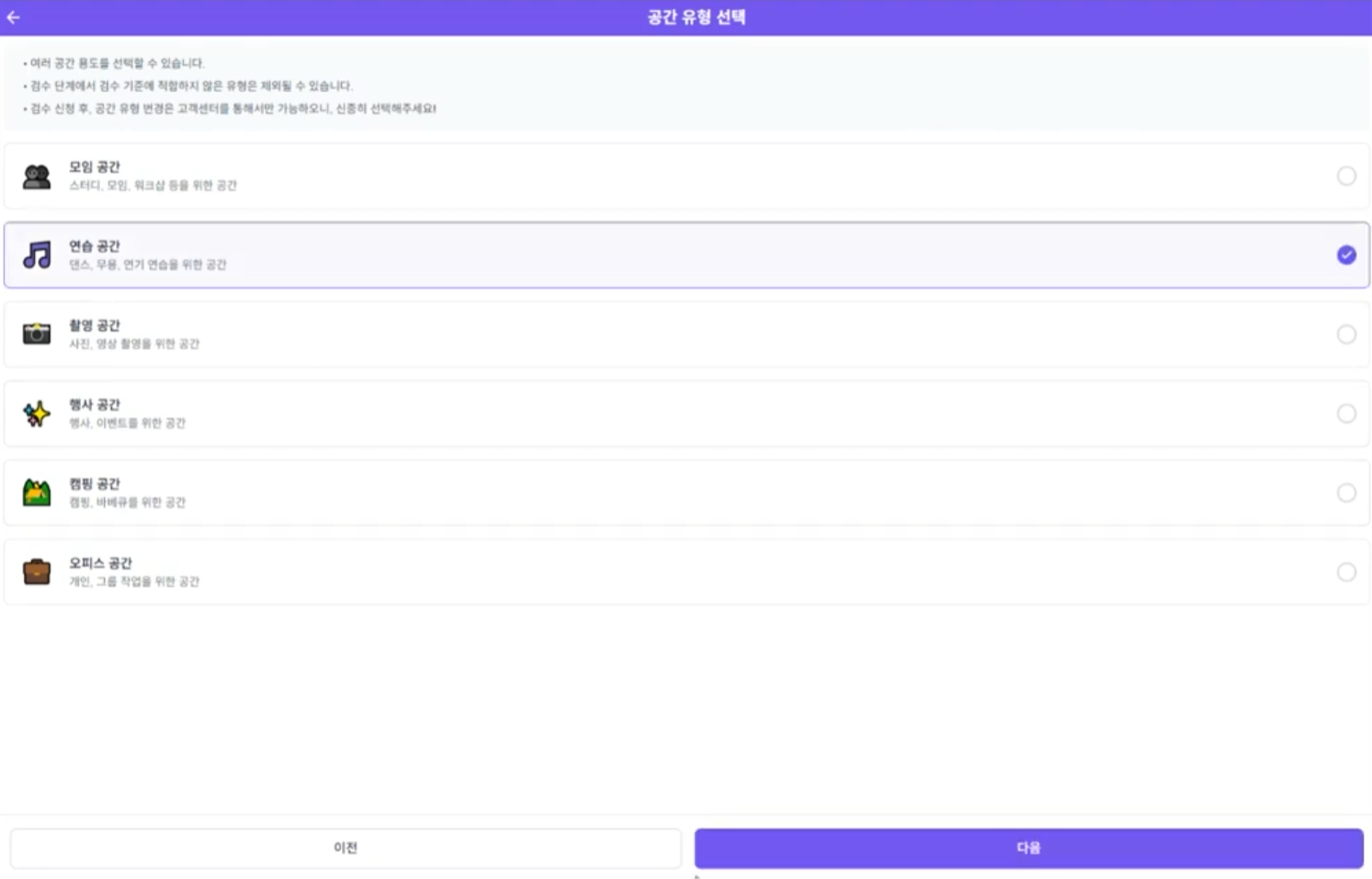 - 공간을 눌러 공간정보 페이지에 들어가면 해당 공간의 정보 및 예약을 확인할 수 있음