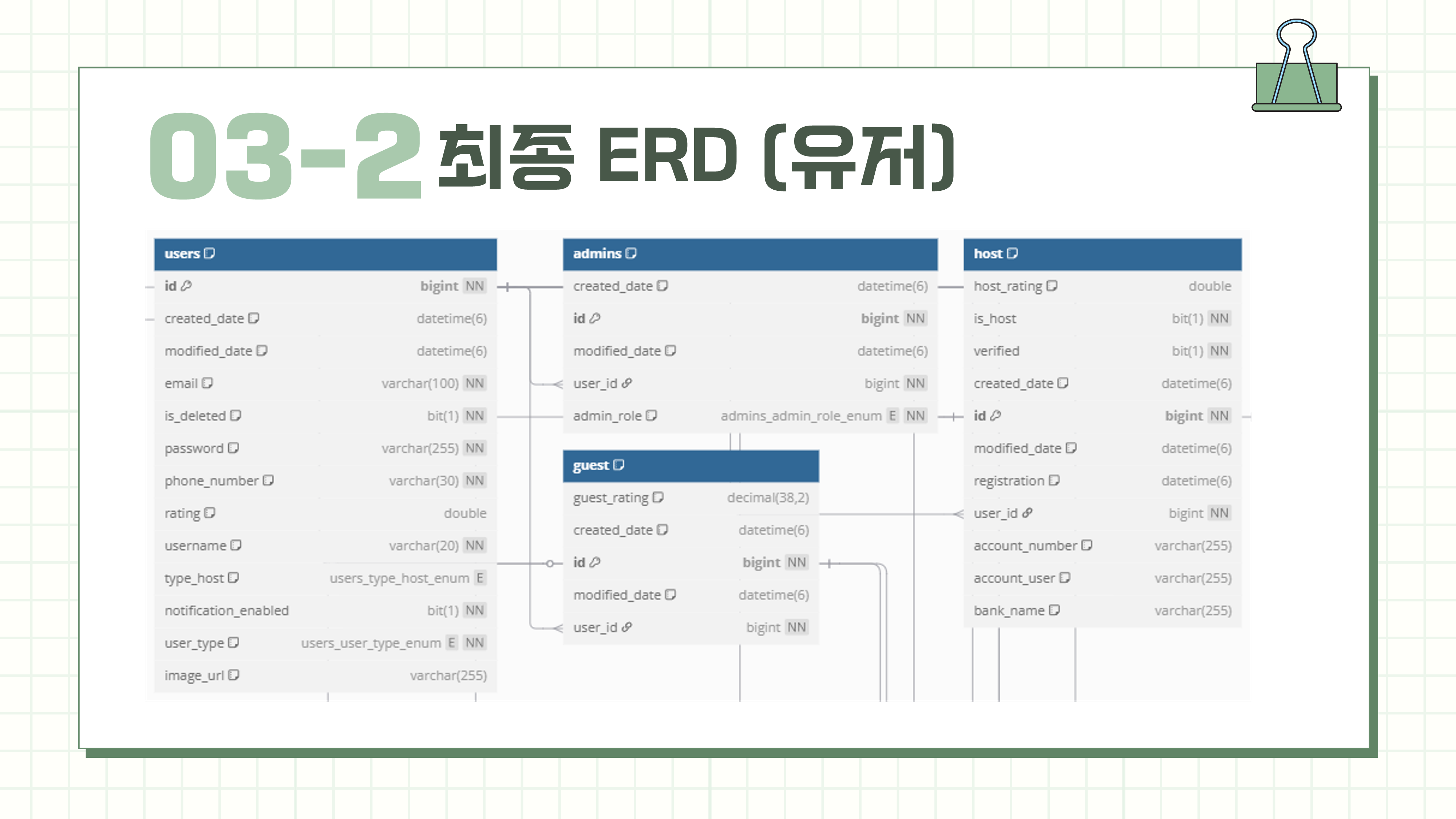 유저가 게스트/호스트로만 나누어지고 어드민은 따로 둘지 등을 고민하는 과정이 있었음
