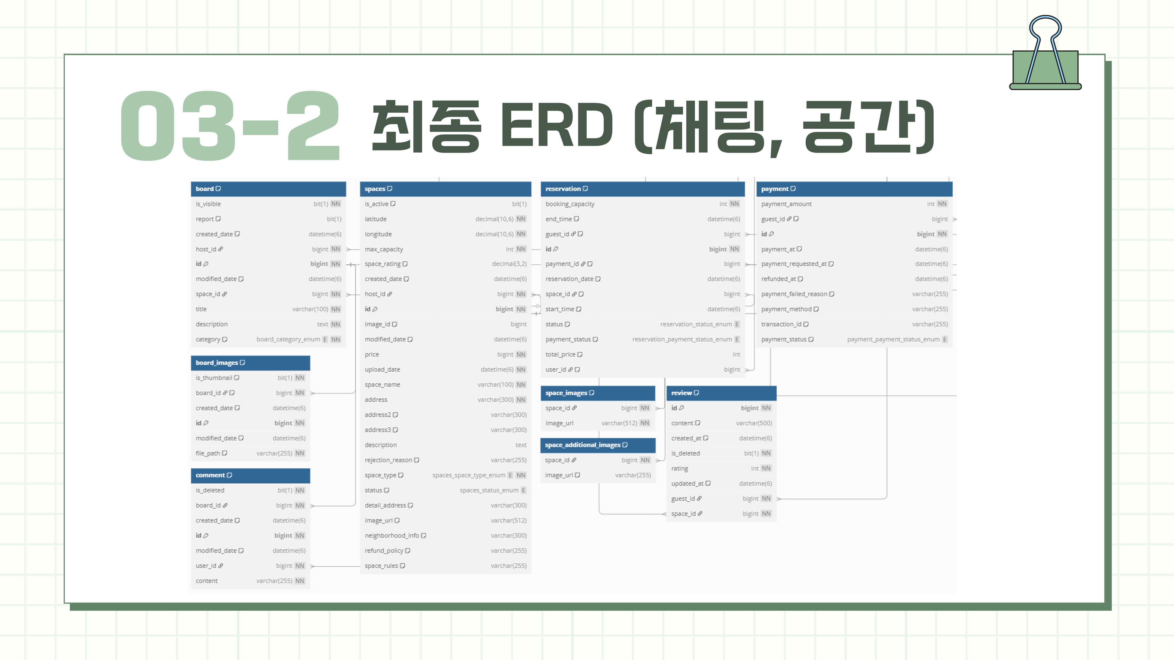 전체적인 구조의 ERD는 중간 피드백과 팀원들간의 기능개발에 중점을 두어 최종적으로 완성할 수 있었음